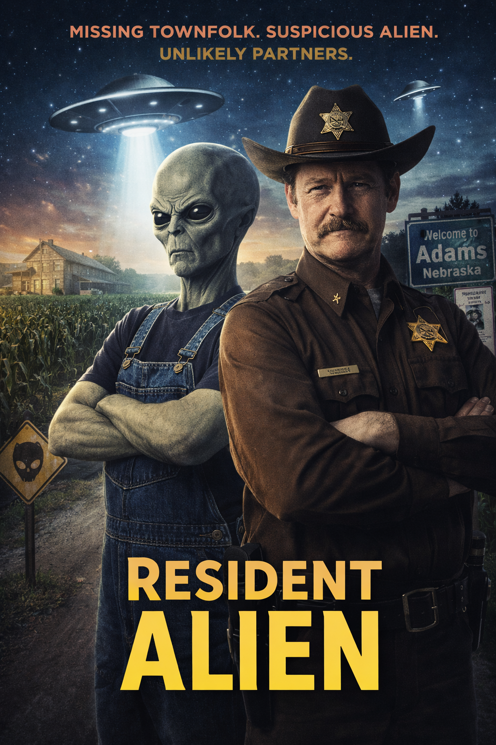 In a quiet rural town where everyone knows their neighbor is an alien, a wave of mysterious disappearances forces the local sheriff to partner with the last suspect anyone trusts—the extraterrestrial farmer who just wants to be left alone.